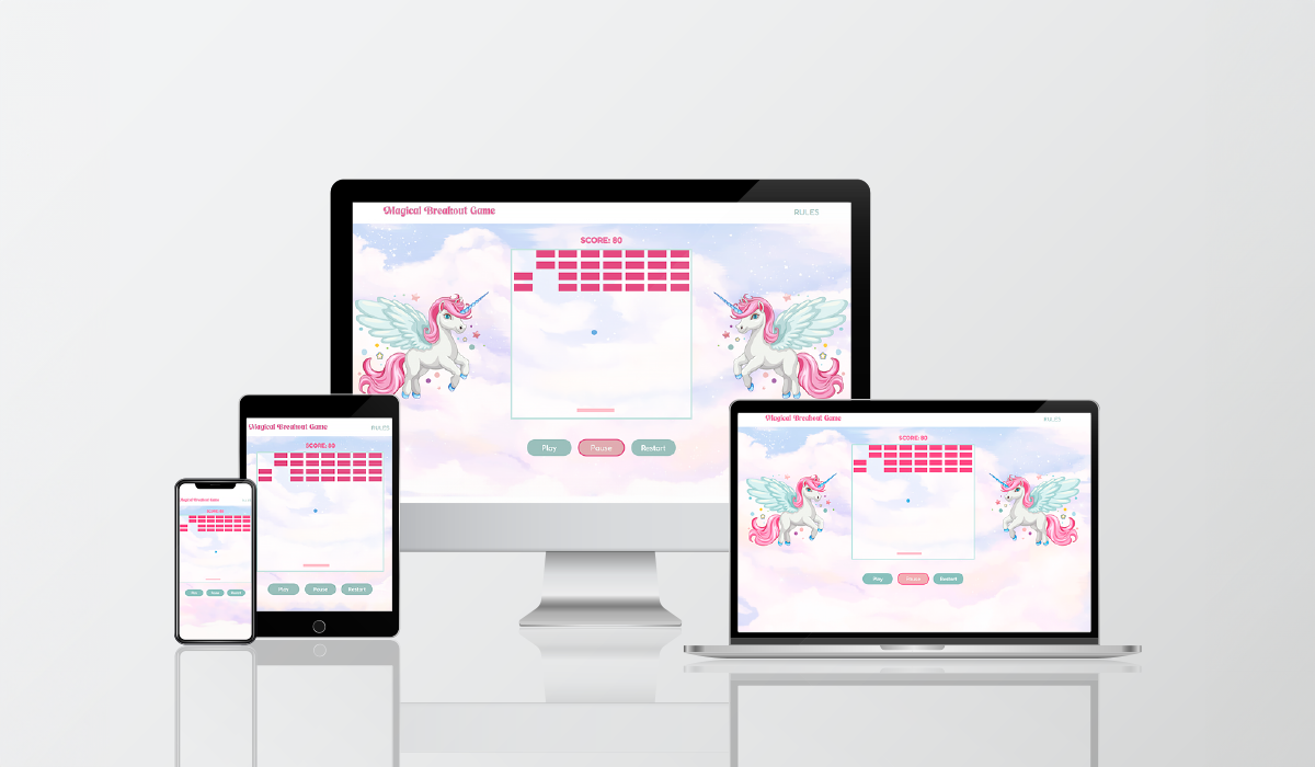 The project started with an extensive exploration of object-oriented programming principles, followed by collaborative brainstorming sessions to shape our game concept. Working together, we built the classes, methods, and modules for our project. We settled on creating a unicorn-themed breakout game tailored for children. Integrating this game into a responsive web page required careful attention to detail, ensuring it worked seamlessly across all devices for an enjoyable user experience.